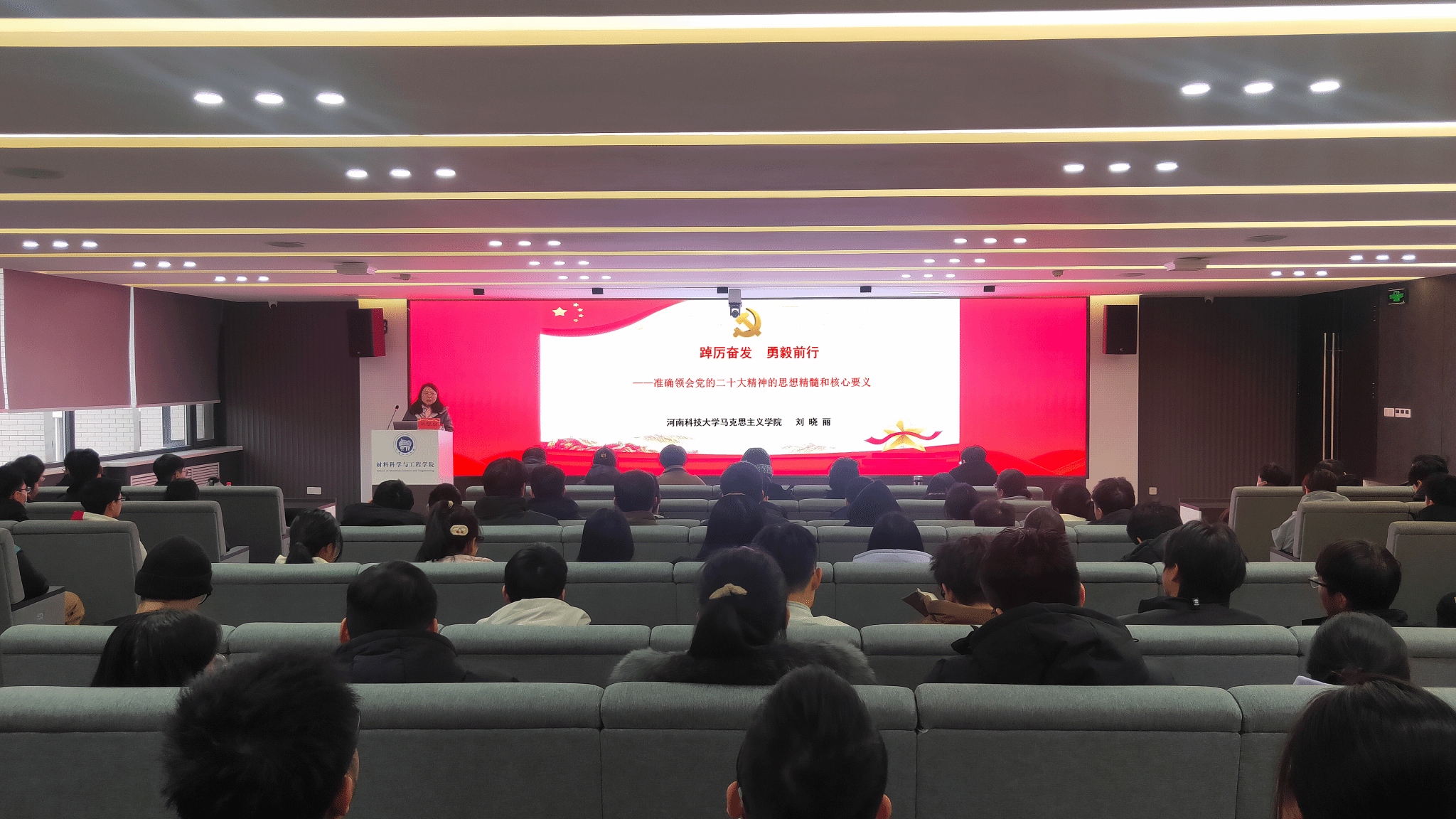 马克思主义学院刘晓丽副教授以《踔厉奋发 勇毅前行——准确领会党的二十大精神的思想精髓和核心要义》为题,为二次元