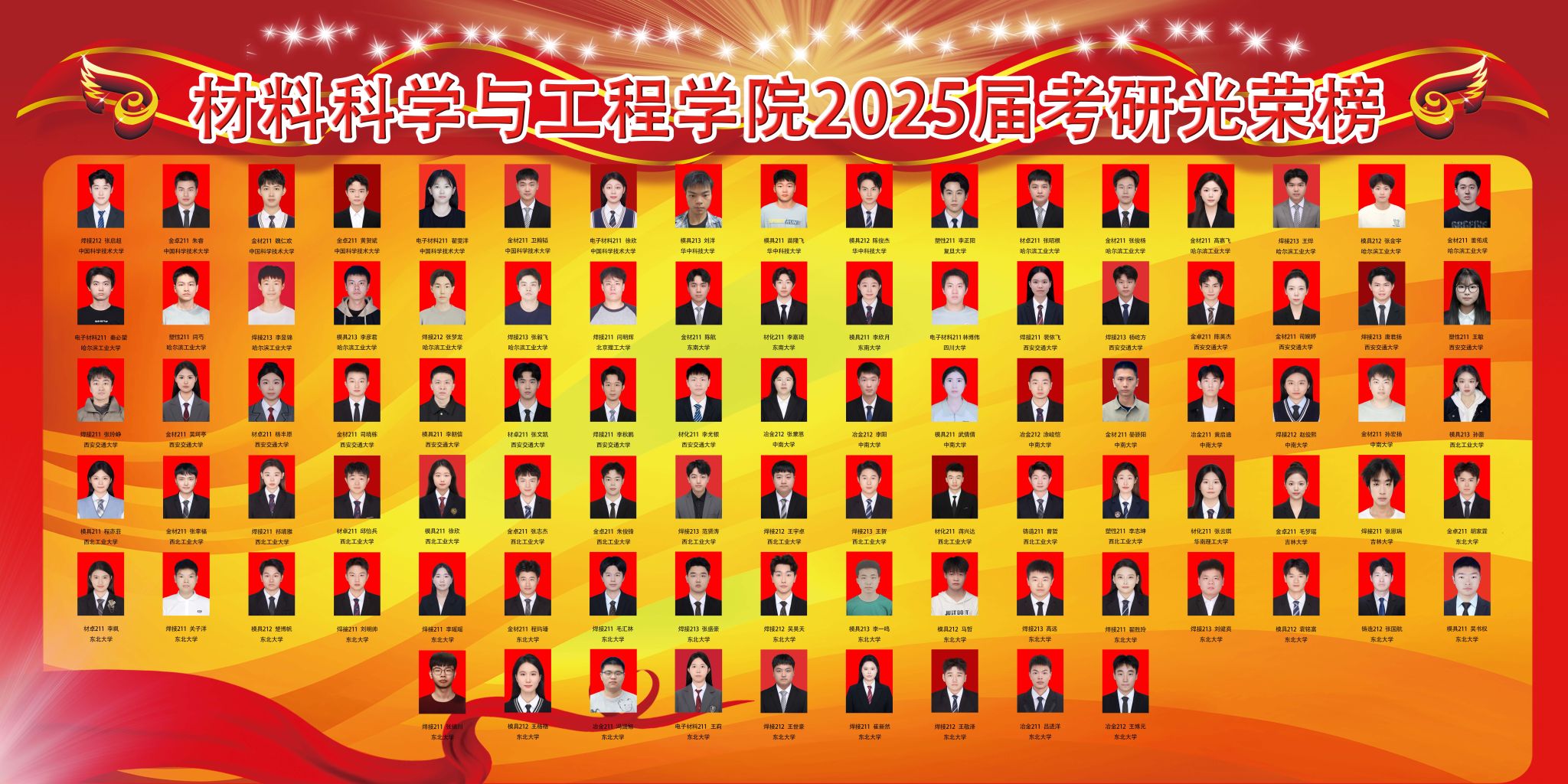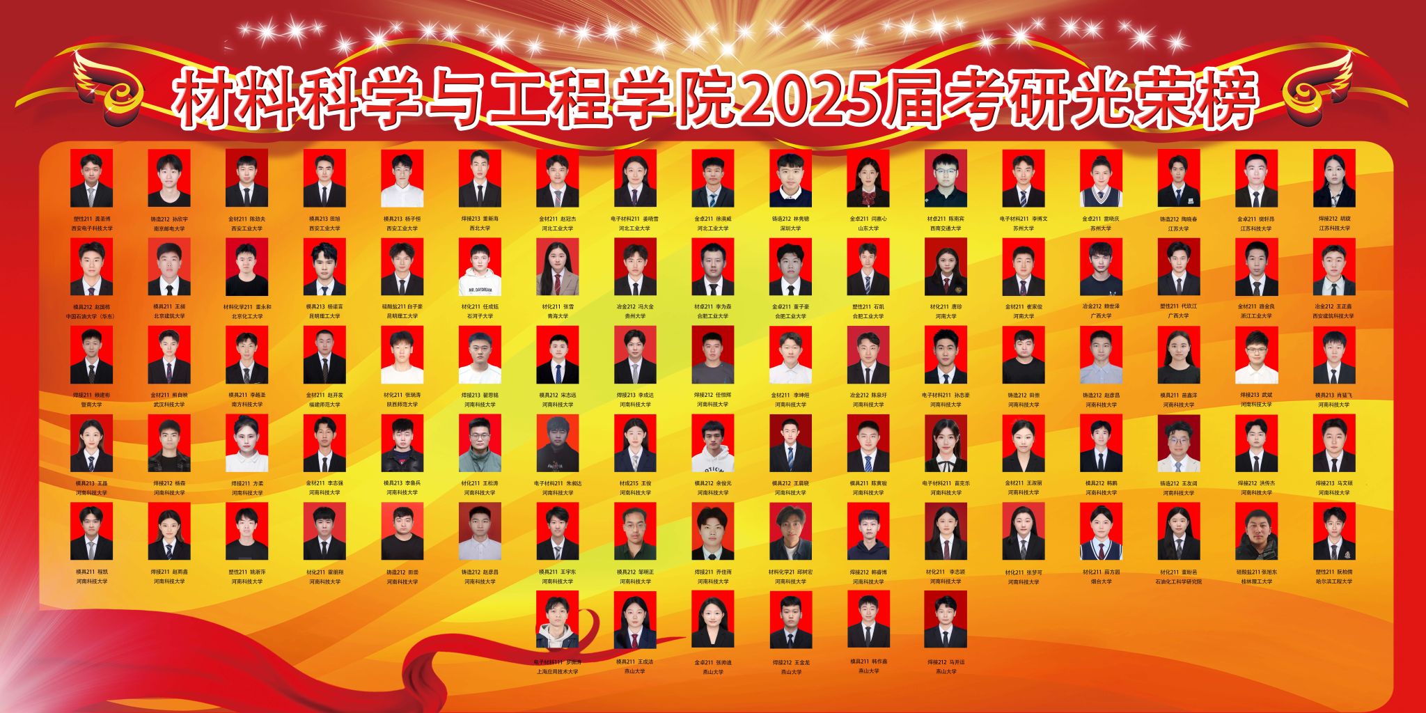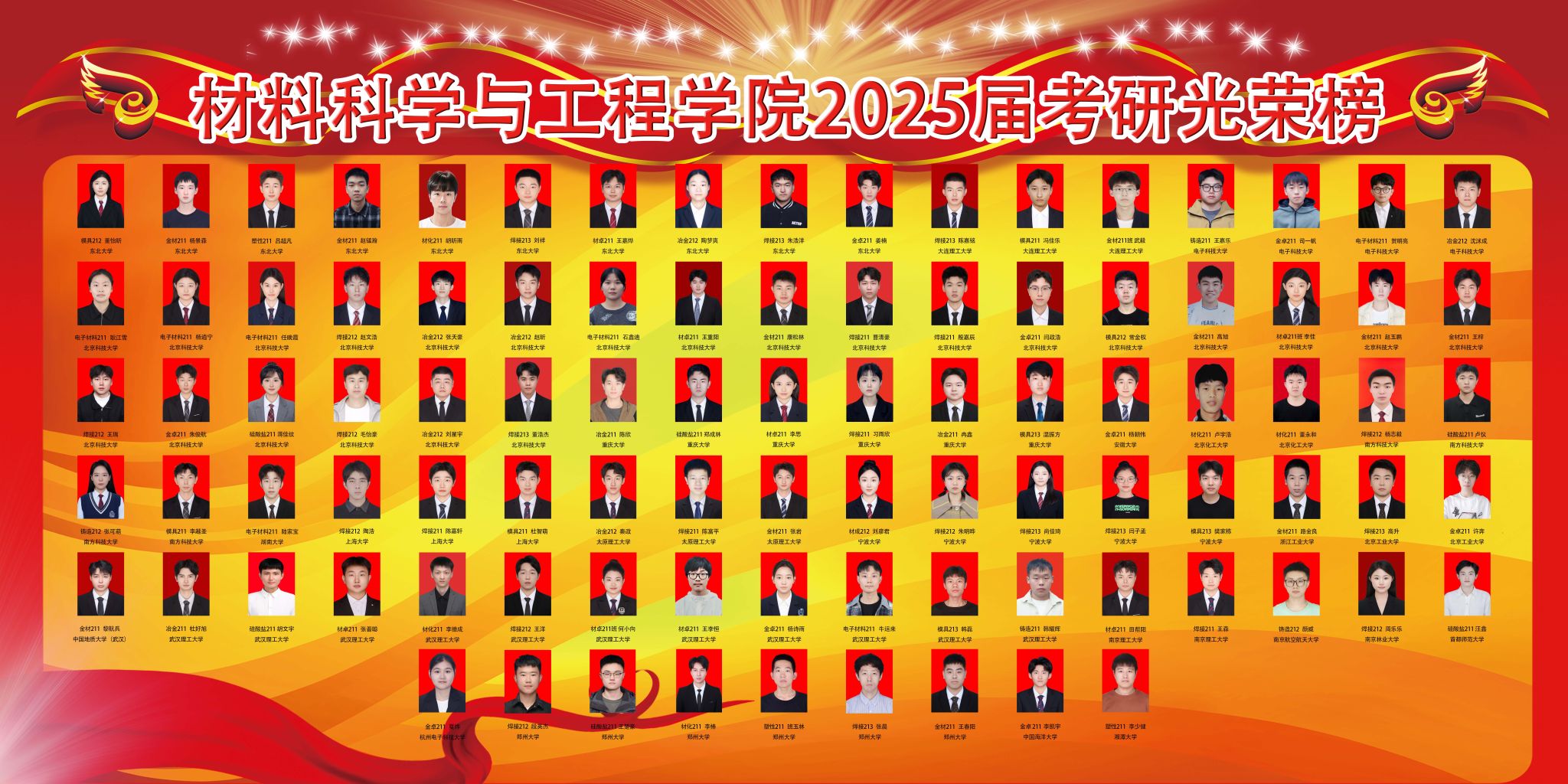 考研学子整体成绩斐然,多个班级升学率突破70%,彰显了学院卓越的育人成效。其中,金属材料工程(卓越)211班以76.7%的考研升学率位居全院首位;材料成型及控制工程专业焊接211班的考研升学率达71.4%,凸显出专业的强劲实力;金属材料工程专业考研升学率为70%,续写辉煌;材料化学211班的考研升学率也高达67.6%,充分彰显了学科优势。