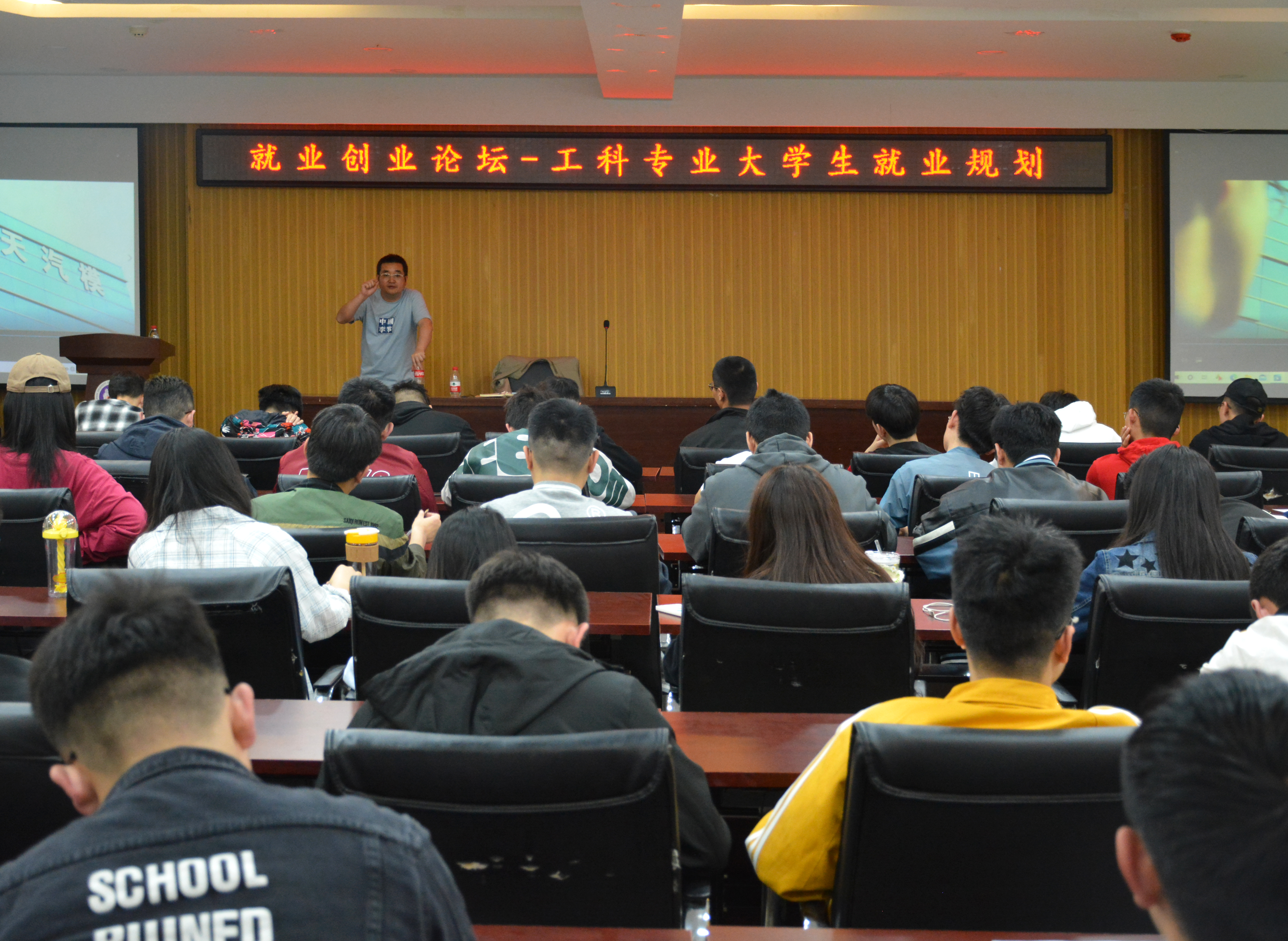 于4月18日在工科一号楼5059报告厅举办“就业创业论坛——工科专业大学生就业规划”专题讲座。本次讲座由天津汽车股份有限公司模具技术总监、模具事业部副总经理陈惠滨主讲,130余名学生参加。