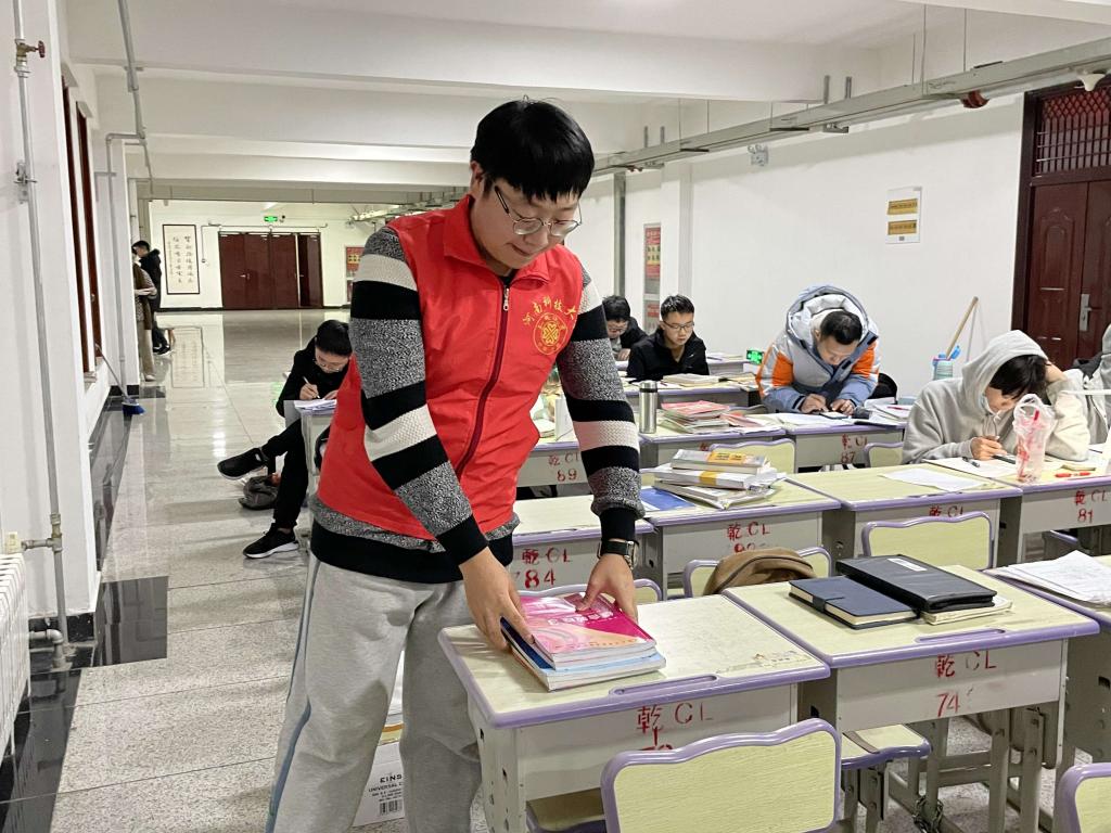 由预备党员、正式党员轮流“党员先锋岗”值班,为考研同学提供热水、清理自习室垃圾、定时清理遗留书籍,以维护自习室的良好学习环境。通过此活动引导全体党员不论在任何岗位、任何地方、任何时候、任何情况下都铭记党员身份,牢记宗旨,积极为自习室学生服务,努力践行党员承诺,时时处处发挥党员模范带头作用,将做合格党员落到实处。