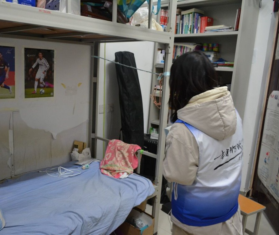 学工办主任李芳带领学生会学生干部到学生宿舍进行安全隐患排查。