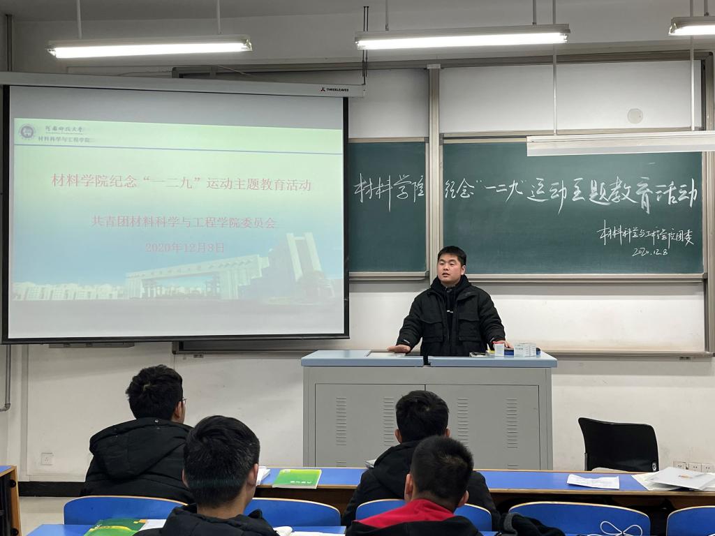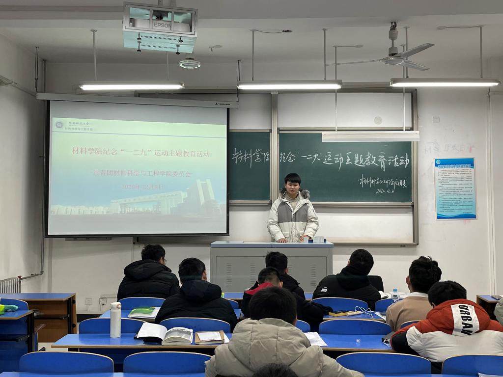团委于12月8日在工科六号楼203教室组织开展了纪念“一二九”运动主题教育纪念活动。2020级学生骨干以及部分团员青年参加了本次主题教育活动。