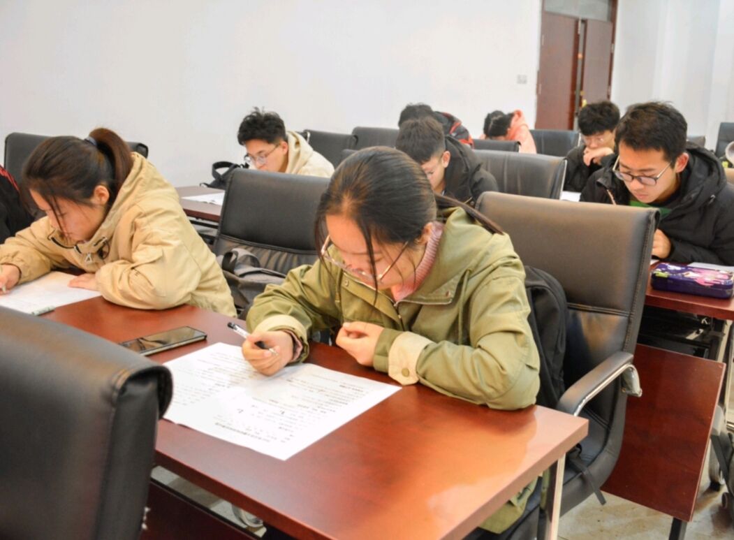 比赛伊始,参赛选手有序入场,工作人员分发比赛专用纸,比赛正式开始。此次比赛考察了词语释义、汉字笔画、中国古代文人与中国古代文化常识以及对中国名著的认知。试题中许多都是较为口语化的字词,日常生活中常用却并不常写,目的就是为了改正同学们在信息时代中提笔忘字、偏旁颠倒、缺横少点的陋习。比赛结束后,参赛者上交试题纸,经过评委公平公正的批阅之后,选拔出了六名成绩优异的同学。