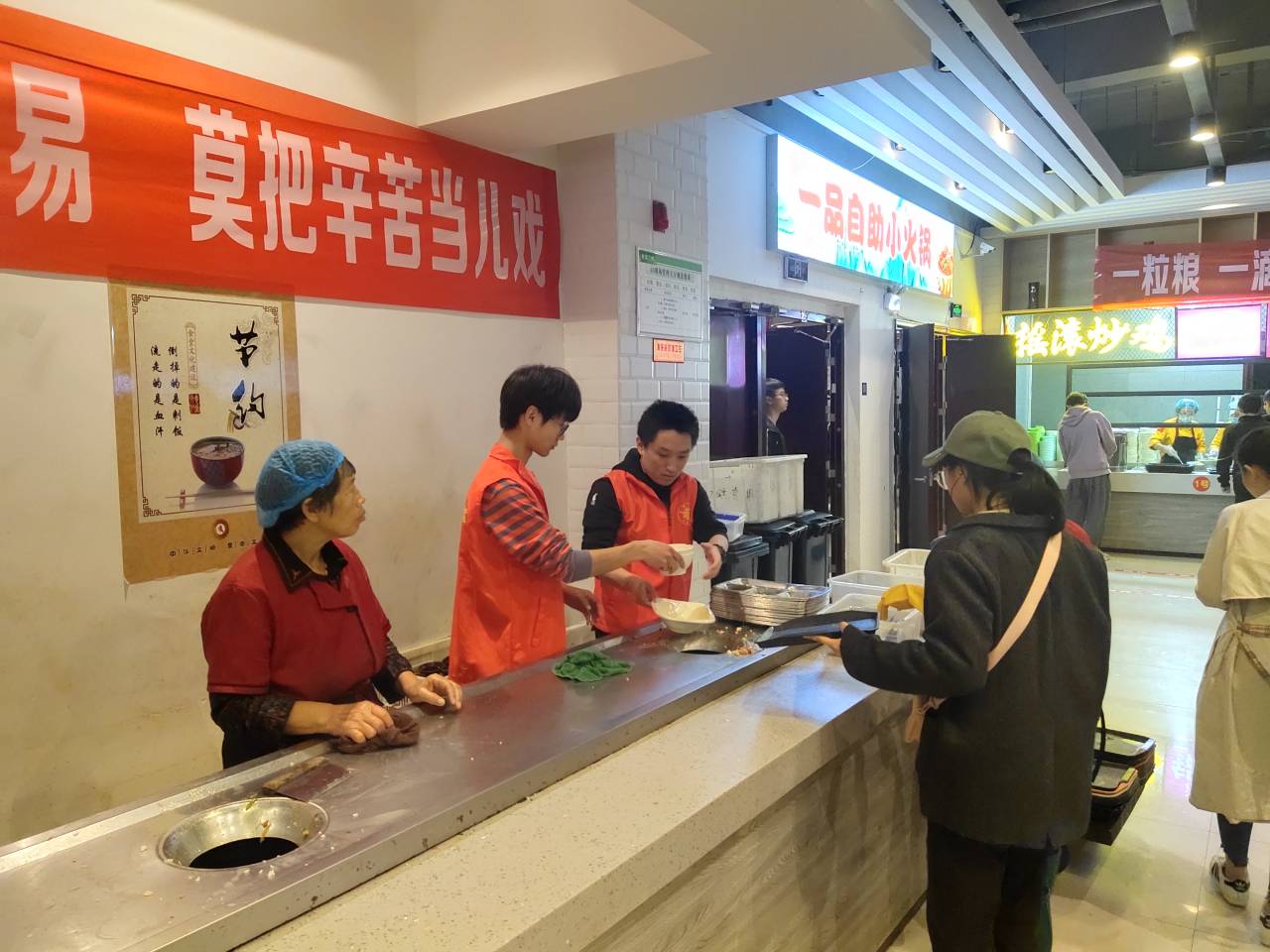 青年志愿者协会带领志愿者在乾园餐厅开展“民以食为天,食以俭为先”主题志愿宣传活动。