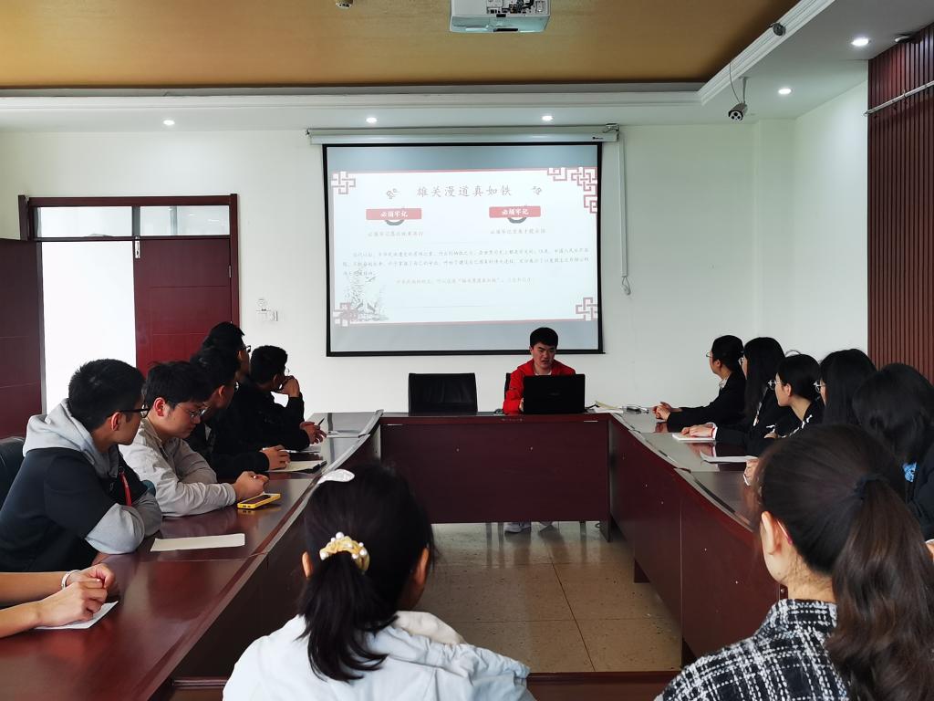 首先,党员龚明明和大家分享了自己读《论中国共产党历史》的感悟:“跟着习近平总书记座谈的足迹一路走来,我的心情越来越澎湃,越来越为党的领导下国家的腾飞感到骄傲和自豪。作为一名学生,一名党员,我深知未来需要我们建设,我们是与时代同行的一代,生逢盛世,又学党史,更让我感受到肩上责任之重。我们青年学子除了踏实学习党史、学习革命精神外,更要付诸行动和加倍的努力,苦学深研、拼搏奋斗,用成绩说话、用事实证明,让党和人民放心,为民族复兴出力!”