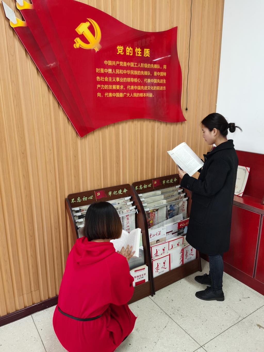 会上,全体党员集中阅读《论中国共产党历史》等重点学习材料,并进行了深入讨论。周亚州表示:“风雨苍黄百年路,党的百年历史,是一部践行党初心使命的历史,我们应该从党史中感悟思想伟力,汲取智慧营养;在阅读中重温光辉历程、传承红色基因、坚定理想信念”。随后支部成员在党史阅读角进行自主阅读学习,在这部厚重深邃的教科书中,诵读党带领人民创造光辉业绩的精彩华章,感悟党矢志不渝的初心使命。在阅读中丈量百年历史,追寻光辉足迹;在研讨中筑牢信仰之基,把稳思想之舵。