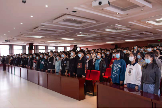 新生代表、材料类213班张泽达同学发言。号召同学们作新时代的青年,勇担责任、勇敢去闯,不负韶华、不负青春,争做有材有料的材料人,奏响“强国有我”最强音。