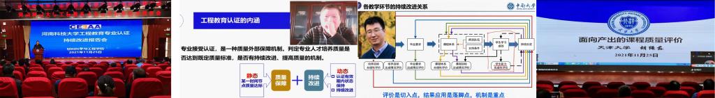 天津大学胡绳荪教授的“面向产出的课程质量评价”报告指出,基于OBE理念的课程大纲需要包含体现学习成果的课程目标、课程目标能够支撑毕业要求、教学内容与环节能够落实课程目标、考核评价的方法标准合理有效,重点分析了三维课程目标常用算分法、问卷法、量规表法的特点及局限性,对课程质量报告中评价环节与权重设置、达成期望值合理性提出建议,强调了课程评价的目的不全在于“评”而重在于“改”,关键在于是否根据学生学习效果对课程教学内容方法手段进行持续改进。