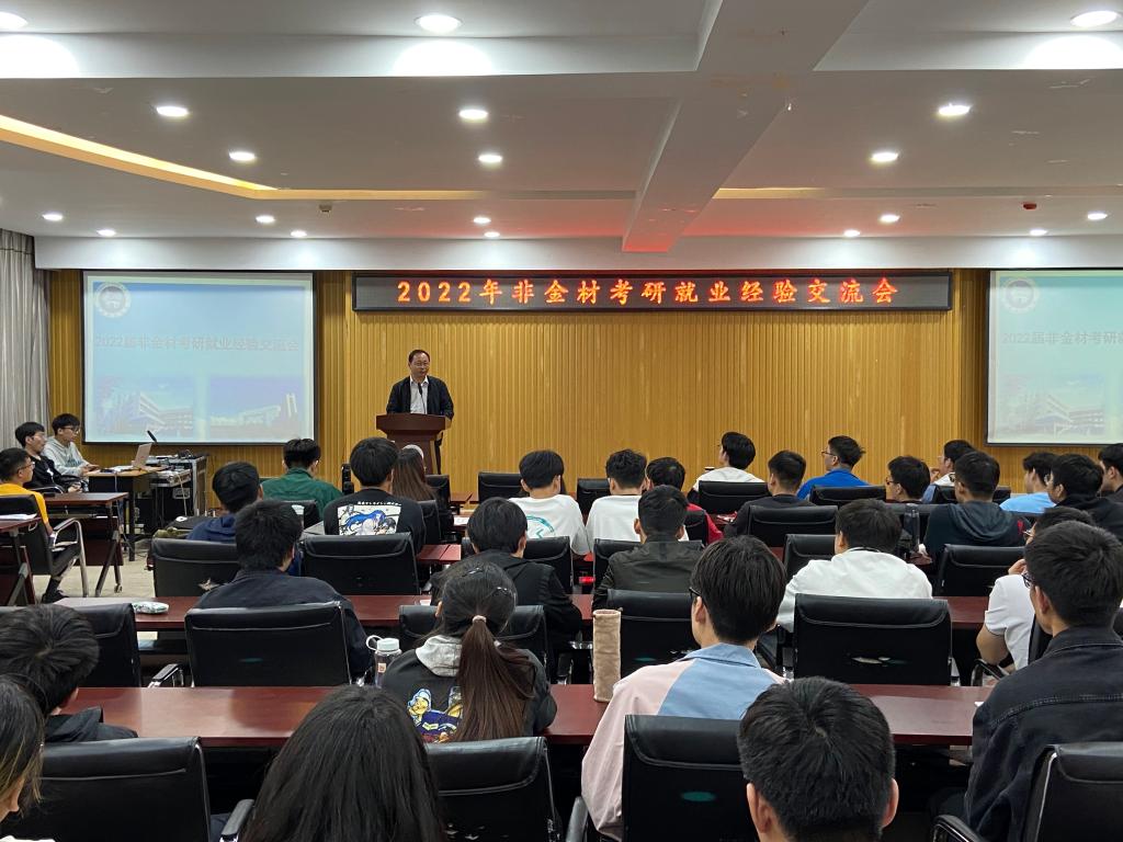 在工科一号楼5059会议室举办了2022年度非金材专业考研就业经验交流会,副院长郭俊卿出席交流会,2019级辅导员张欣、非金材教研室柳勇和逯峙、2019级和2020级非金材专业全体同学参加经验交流会。交流会由非金材2018级温鑫同学主持。