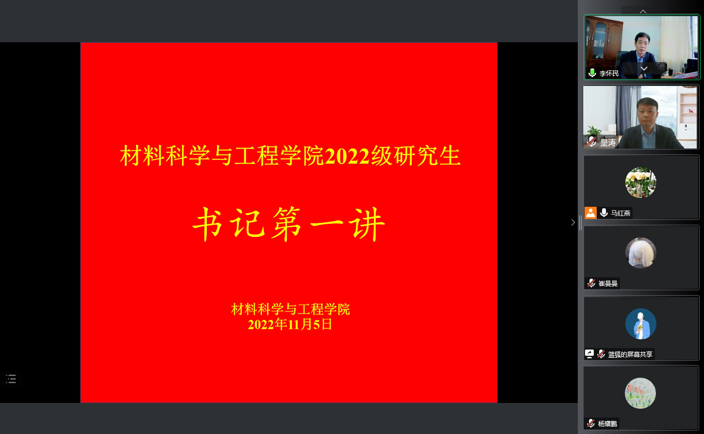 通过线上腾讯会议的形式,成功组织了2022级研究生入学教育之“书记第一讲”,学院党委书记李怀民主讲,学院主管研究生工作的副院长皇涛主持,2022级全体研究生参加会议。