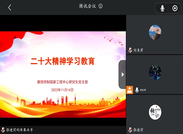 磨损控制国家工程中心研究生党支部通过线上会议开展了“砥砺奋进新征程 勇毅前行作表率”主题党日活动。活动由支部书记郑鑫园主持,支部全体成员参加。
