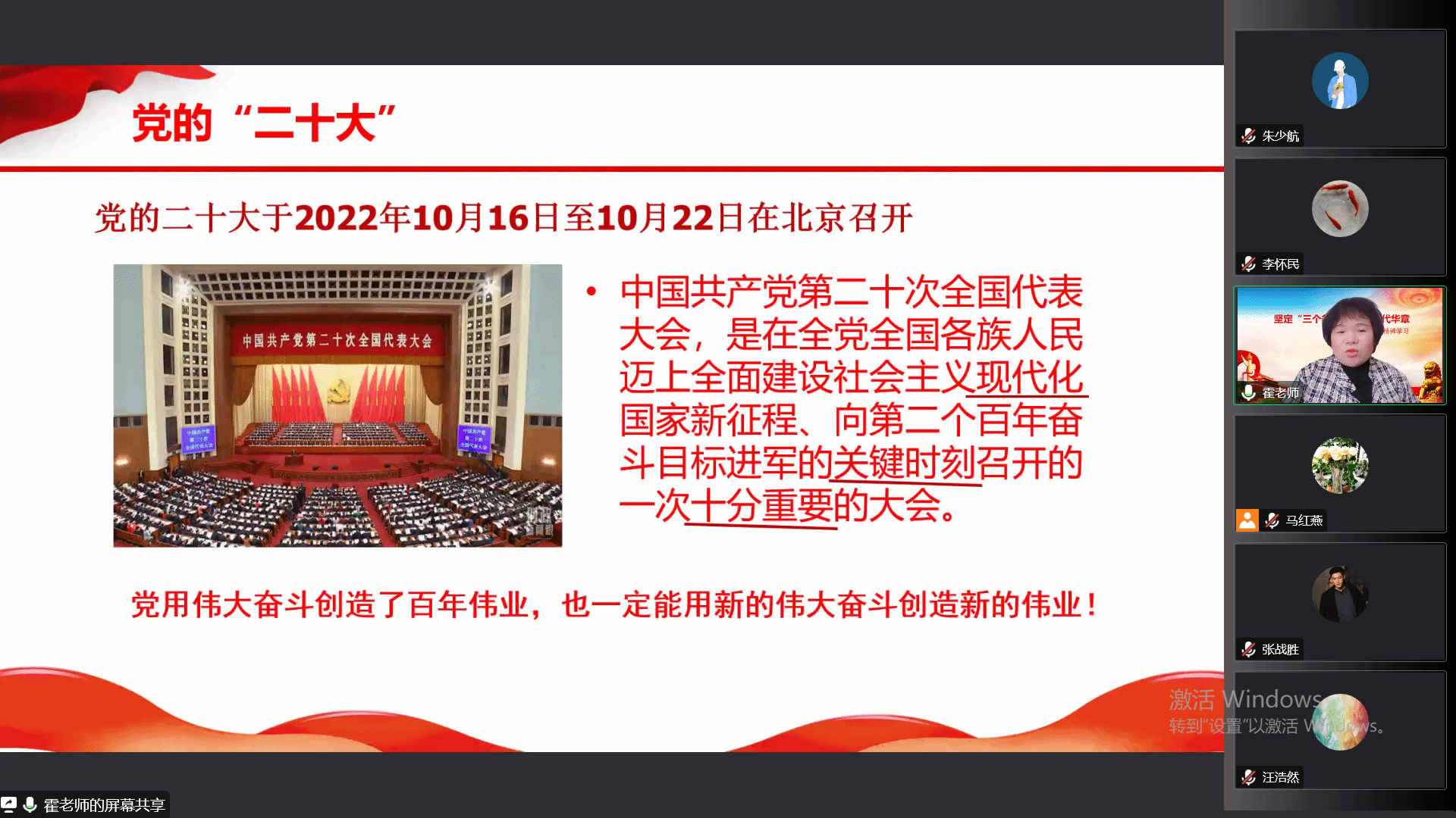 霍玉敏副教授从“对新时代历史性成就、历史性变革的新定位”“开辟马克思主义中国化时代化新境界”“坚定‘三个务必’走好新时代‘赶考路’”等三个方面,详细阐述了二十大报告的总体情况和“三个务必”的提出背景、重要内涵等,给师生作了一场精彩的二十大精神辅导报告,她的报告既把握了重点、又聚焦了热点,逻辑严谨、通俗易懂、精准透彻、内容翔实,对师生全面、准确领会党的二十大精神提供了重要帮助。