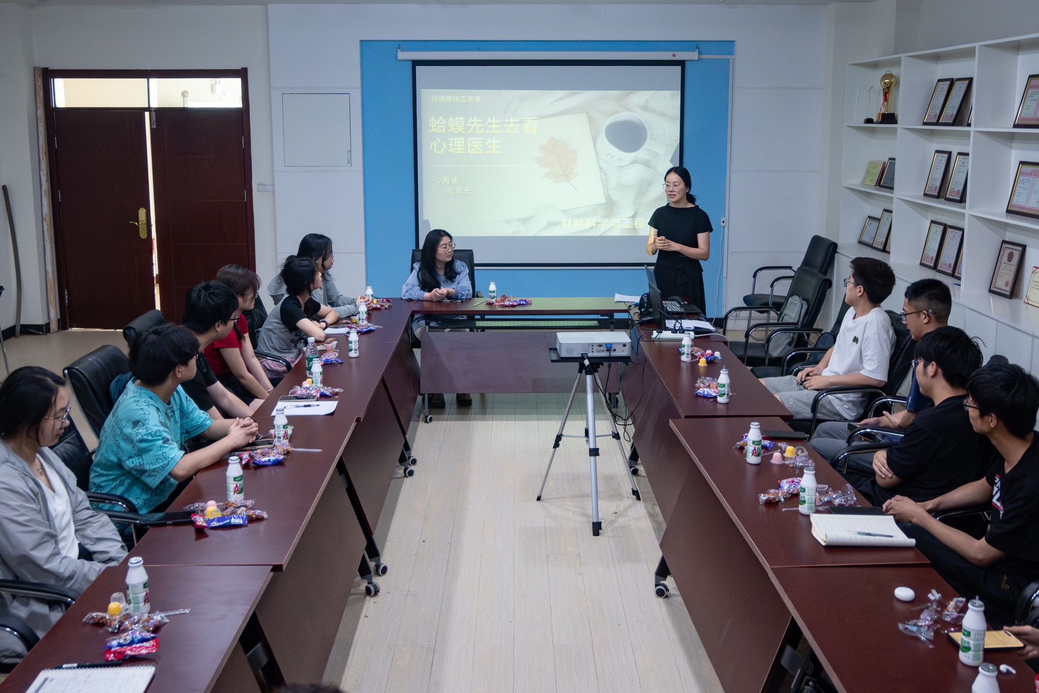 在工科一号楼257会议室举行“心·悦读 心·成长”读书会。学校心理健康教育中心王玉玉、辅导员张欣及25名学生代表参加本次心理书籍阅读分享会。