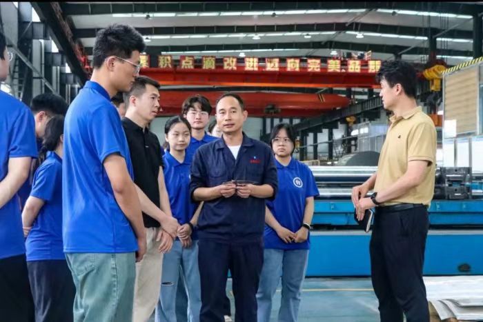 柳勇一行参观了企业生产车间,详细了解了电解电容器用铝箔、高档装饰铝箔等产品的生产工艺和流程。参观中,双方不仅就产品工艺进行了交流,还就学生实习实践、校园招聘等方面进行了沟通,希望能够进一步深化合作,并诚挚邀请公司来二次元