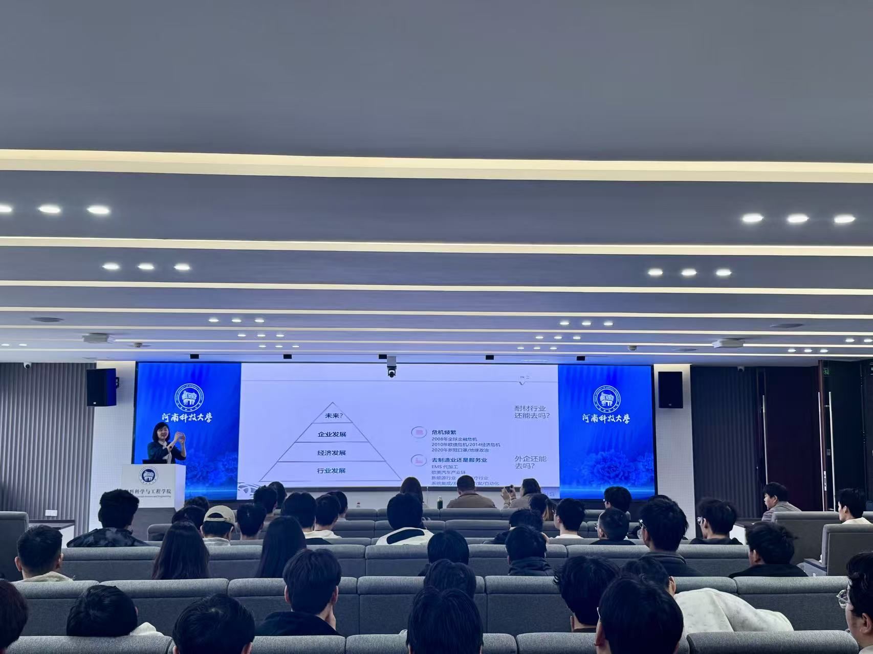 于工科1-5059举办就业创业论坛——如何选择一份适合自己的职业。本次讲座由维苏威高级陶瓷(中国)有限公司人力资源副总裁顾顺钰主讲,学院140余名学生参加了本次讲座。