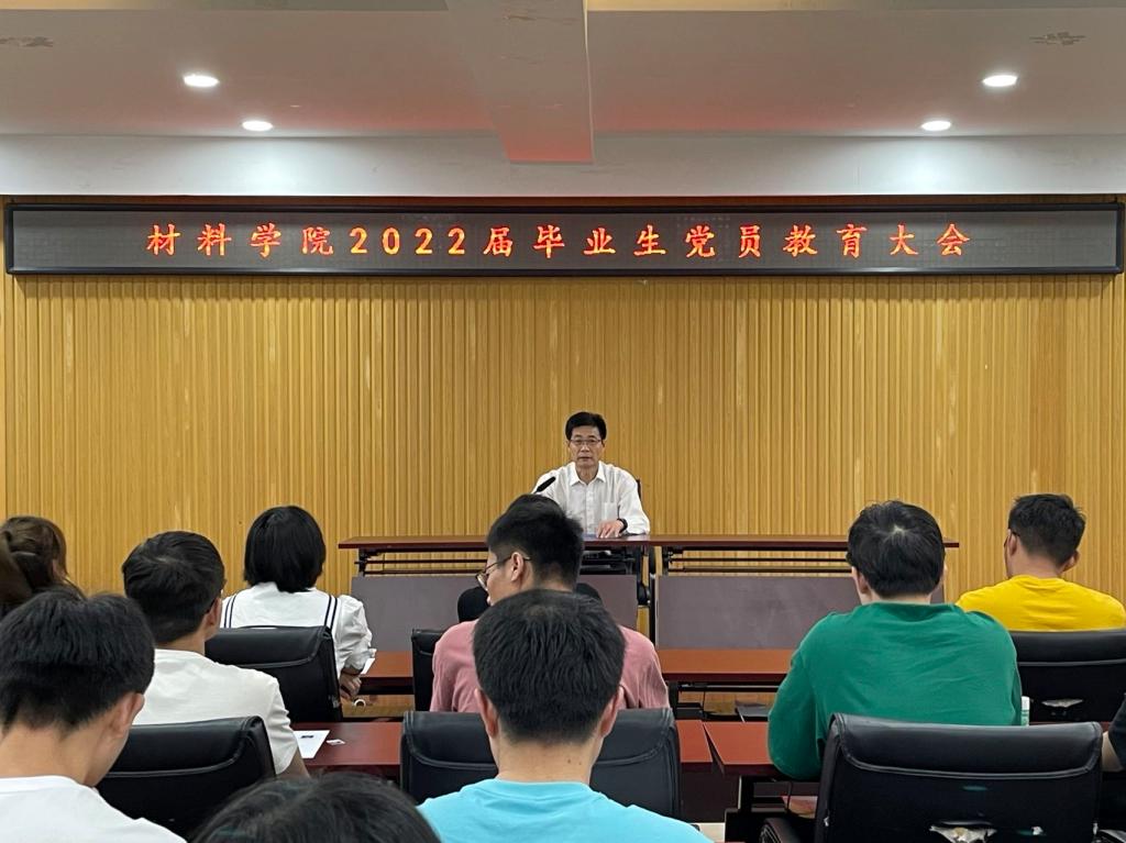 在工科1-5059召开2022届毕业生党员教育大会,学院党委书记李怀民以“青春心向党·筑梦新征程”为主题对毕业生党员讲授党课。教育大会由学工办主任李芳主持,2022届毕业生党员代表参加。