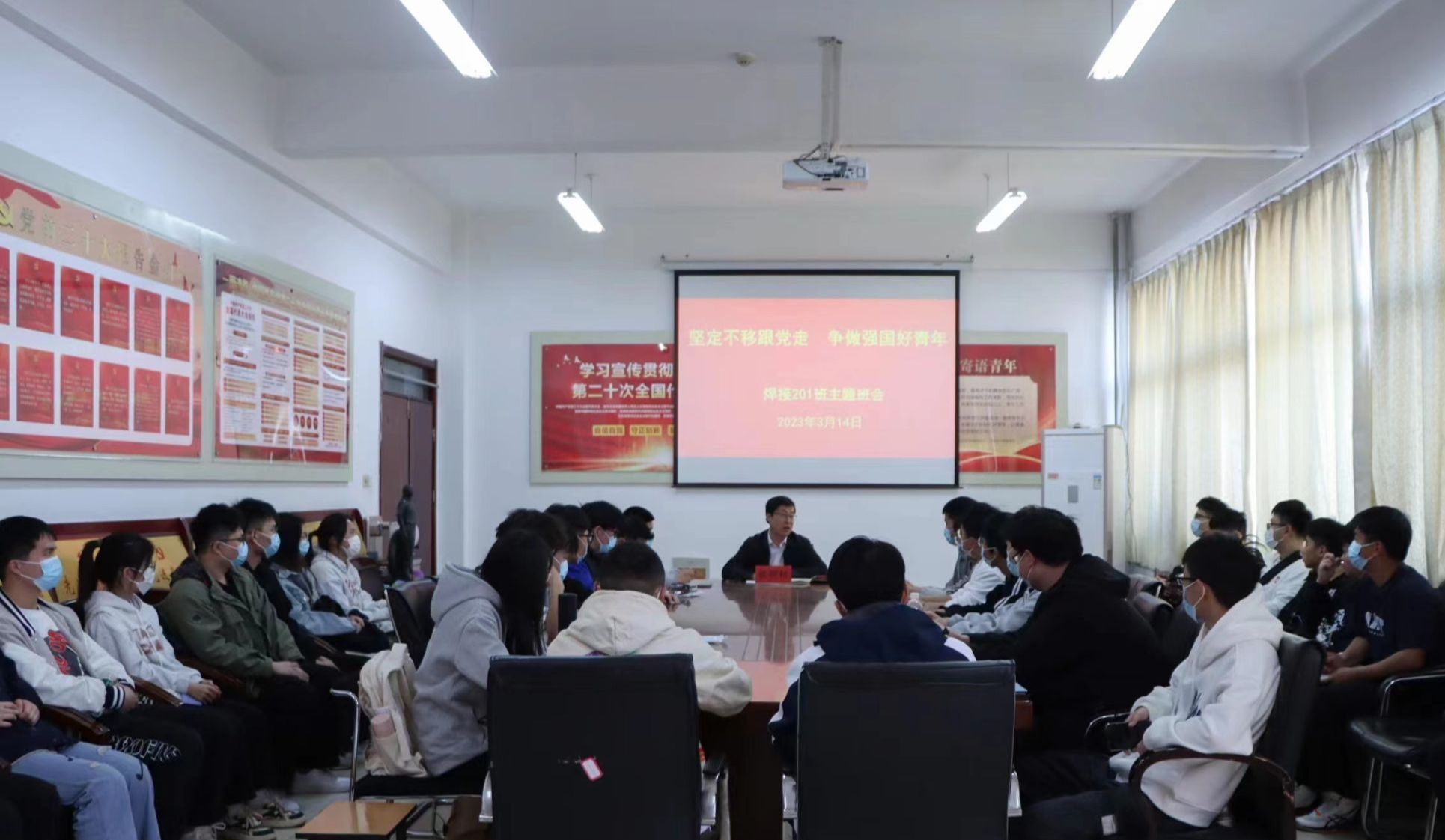 张柯柯以《坚定不移跟党走 争做强国好青年》为题,重点阐释了中国式现代化的深刻内涵,并强调,学习宣传贯彻党的二十大精神是当前和今后一个时期首要政治任务,要深刻领会党的二十大精神的丰富内涵,把思想和行动统一到党的二十大精神上来,结合学习工作实际,争做强国好青年。焊接201班班长刘飞扬同学介绍了班级基本情况。同学们分别从思想、学习、生活等方面汇报了自己校取得的进步和收获,并就学业规划等进行了分享。