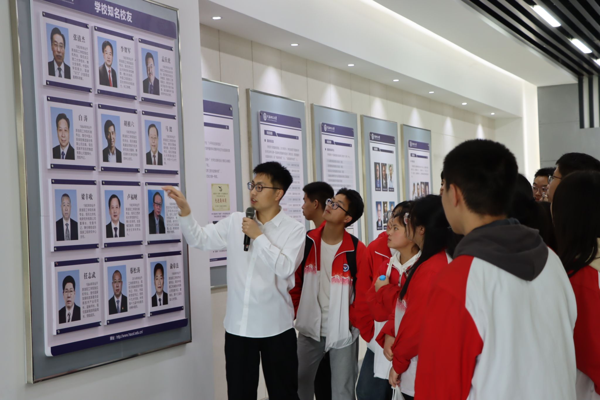 学院团委书记姚占杨对汝阳一高师生一行来访交流表示欢迎。来访期间,汝阳一高师生一行分别参观了图书馆、龙门实验室展厅、公共教学楼昆虫标本馆、生命科学馆、材料学科多功能展厅、牡丹园等。在材料学科多功能展厅,姚占杨介绍了学校、二次元概况
