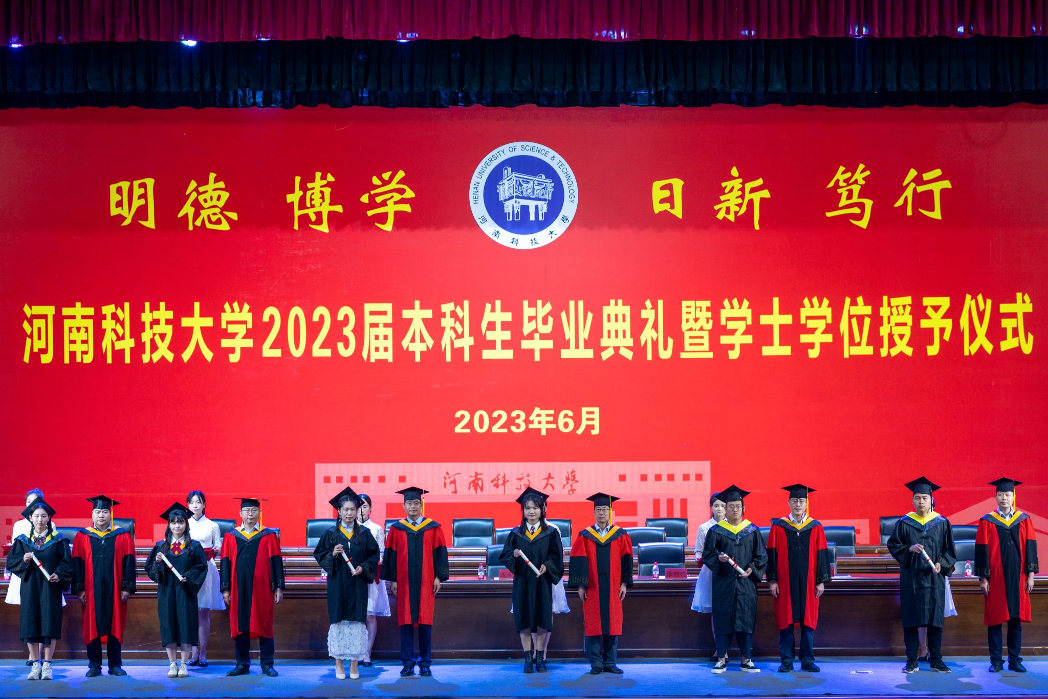 关于表彰2023届优秀本科毕业生的决定》。伴随着欢快的乐曲,学校和学院的领导为毕业生代表颁发了毕业证书,为省级和校级优秀毕业生代表颁发了荣誉证书。