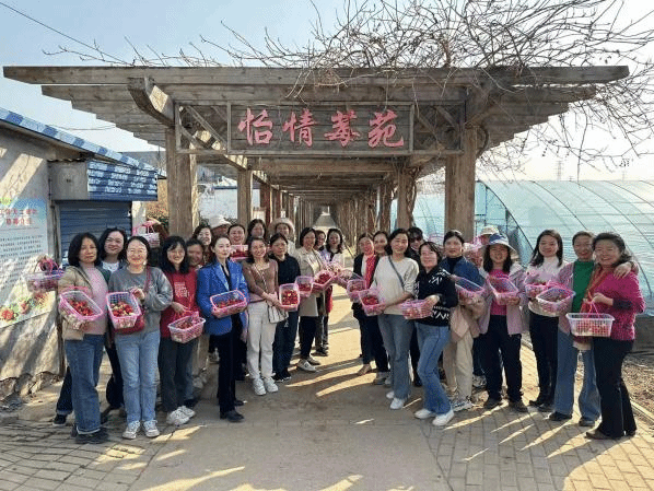 下午3:00大家乘车来到位于孟津区送庄镇朱寨村的洛阳市最大的草莓种植基地——孟津十里香草莓总基地,这是一个是以农业观光、农业休闲功能为主,拓展乡村旅游、科普文化等多功能的综合性休闲园区。园区经理为大家介绍了草莓的品种和采摘手法后,大家兴致勃勃地走向田间地头,尽情采摘品尝。颗颗草莓,甜美多汁,采摘下的那一刻,幸福感油然而生。在亲近大自然的同时,也体会到劳动和收获的快乐,时而三五成群拍照合影,时而分享采摘成果,每个人的脸上都洋溢着收获的笑容,大家感受着春天的气息,享受着闲暇的惬意,交流着各自的愉悦和彼此的关爱。