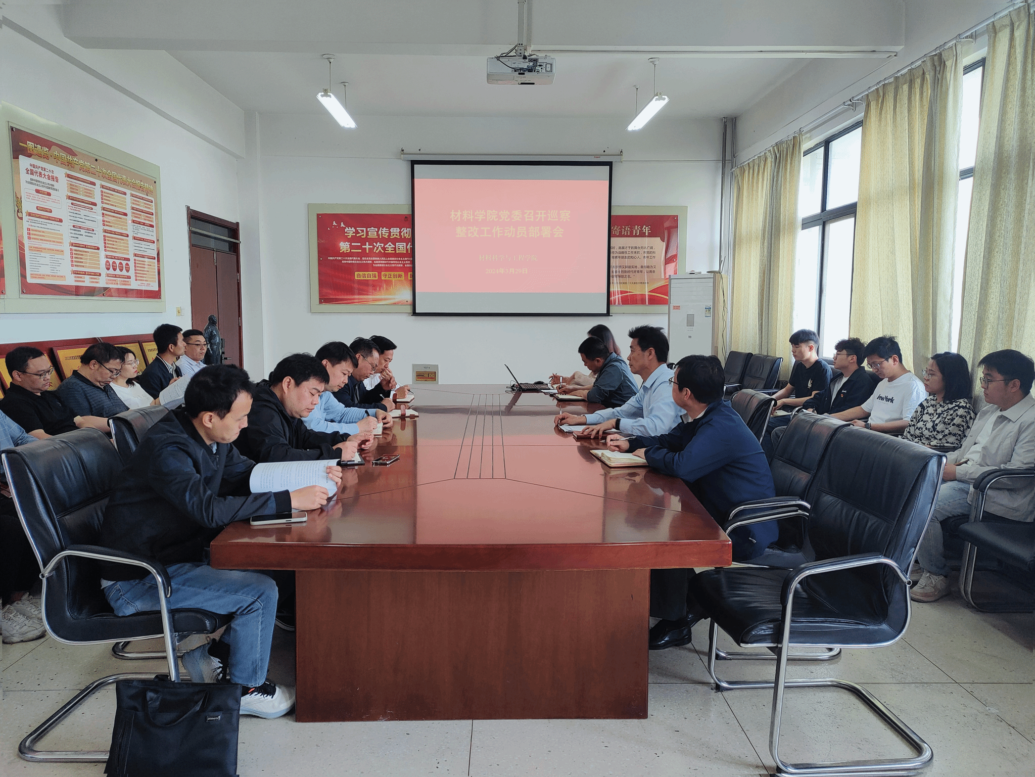 为推动巡察整改工作,3月29日,学院在工科一号楼203会议室召开党委(扩大)会议,传达部署学院巡察整改工作。会议由学院党委书记李怀民主持,学院党委委员、班子成员、全体科级干部和党支部书记参加会议。