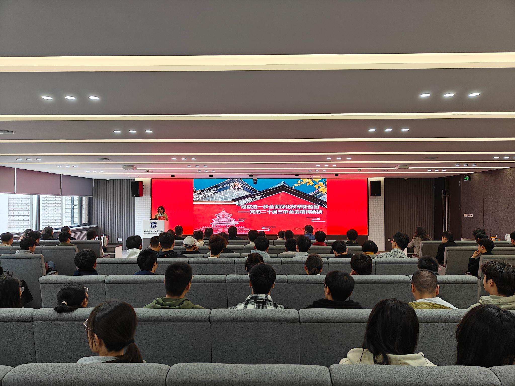 为深入学习贯彻党的二十届三中全会精神,11月7日下午,学院在工科一号楼5059学术报告厅举办理论讲堂专题讲座,特邀学校“理论讲堂”宣讲团成员、校党委宣传部(二次元)副部长沈兰为学院师生党员作题为“绘就进一步全面深化改革新蓝图”的专题报告。讲座由学院党委副书记贾海波主持。