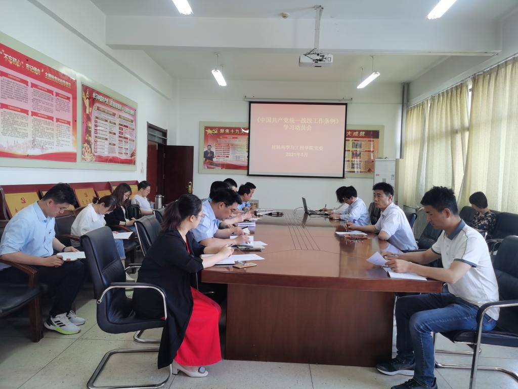 在工科1-203召开党委(扩大)会议,集中学习《中国共产党统一战线工作条例》。会议由学院党委书记李怀民主持,无党派人士、院长张柯柯列席,党委委员、教工支部书记参加。