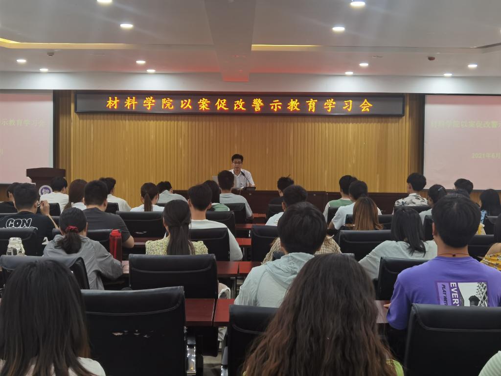 在工科1-5059举办以案促改警示教育学习会。学习会由学院党委书记李怀民主持,学院2021届全体毕业生党员参加。