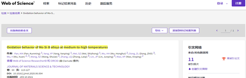 材料学科耐磨材料研究团队潘昆明副教授发表的综述性论文《Oxidation behavior of Mo-Si-B alloys at medium-to-high temperatures》于7月12日入选Essential Science Indicators(ESI)高被引论文。