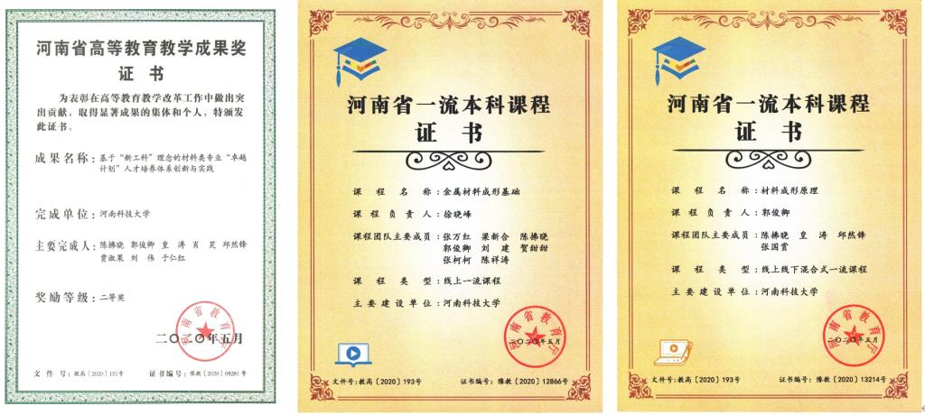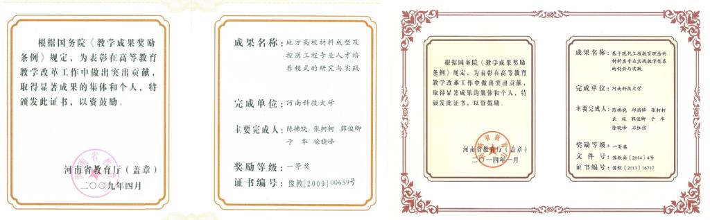 河南省高等教育教学成果一等奖 |